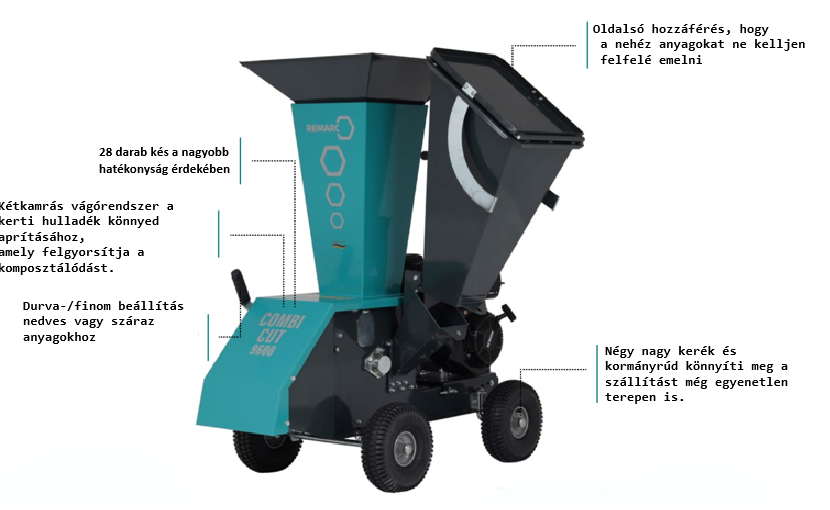 is képes gyorsan, homogén darabokra aprítani, ezzel jelentősen gyorsítva a komposztálási folyamatot.