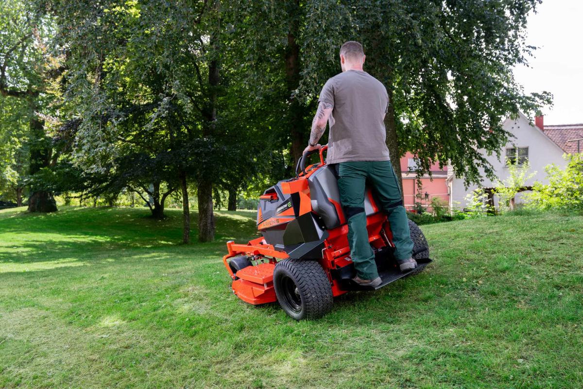 • Intuitív vezérlés: Minden funkció jól látható és könnyen elérhető a kezelő számára. A maximális haladási sebesség egy gyors mechanizmussal korlátozható, és a gép elektromos rögzítőfékkel, valamint két haladási sebességfokozattal rendelkezik.