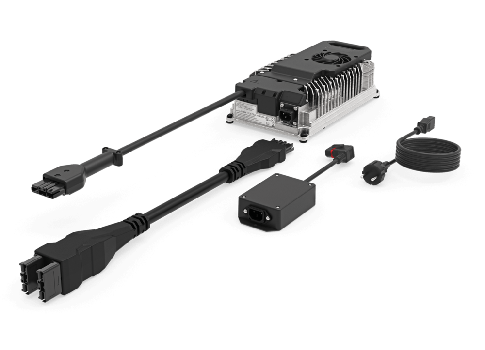 Ez a Ariens Fast Charger FusionCore with Y-Harness egy gyorsabb töltőmegoldás a FusionCore 56 V akkumulátorokhoz, amely: