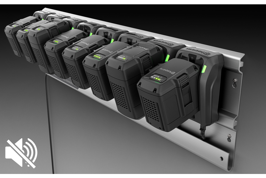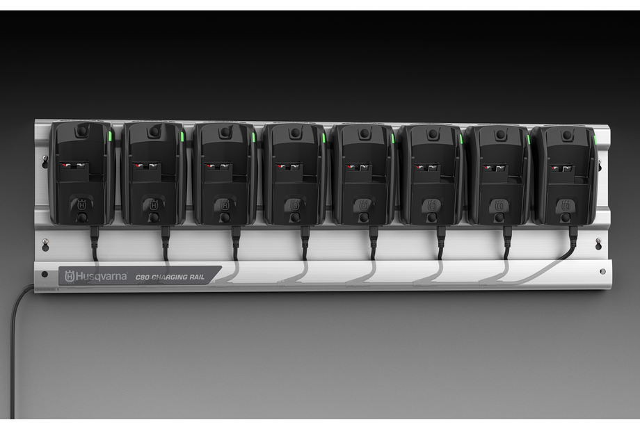 A Husqvarna 40-C80 töltőállomás kényelmes módot kínál akár nyolc Husqvarna BLiX 36 voltos akkumulátor éjszakai töltésére.