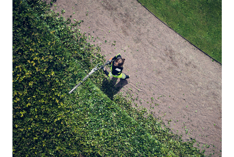 A Husqvarna 525iHE3 egy nagy kapacitású, akkumulátoros oszlopos sövénynyíró, akár 3 méteres kinyúlással, professzionális használatra. A 60 cm-es állítható vágórúd hármas csiszolt késekkel nagy vágási sebességet biztosít a nagy termelékenység érdekében magas, széles vagy alacsony sövény vágásakor. A vágóléc könnyen összecsukható a könnyebb szállítás és tárolás érdekében. A jól kiegyensúlyozott kialakítás, az alacsony rezgésszint, valamint az ergonomikus fogantyúk és az intuitív felhasználói felület kényelmes használatot biztosítanak a hosszú és megerőltető munkaidőben. Az IPX4 szabvány minden időjárási használatra és az aktív akkumulátorhűtő rendszer biztosítja a magas üzemidőt. Integrált csatlakozás a digitális szolgáltatásokhoz, például a Husqvarna Fleet Services™ szolgáltatáshoz való egyszerű csatlakozáshoz. Akkumulátor és töltő nem tartozék.
