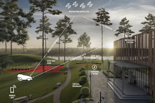 A műholdas alapú RTK GNSS technológiát használó virtuális, vezeték nélküli működés akár 2 cm-es pontosságot tesz lehetővé. A fizikai határolóvezetékek nélküli telepítés a robusztusság és a rugalmasság új szintjét jelenti, lehetővé téve a rendszeres területigazítást és a gyepjavítást a kábeltörés veszélye nélkül.