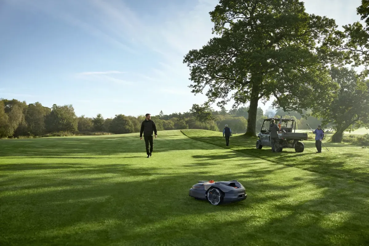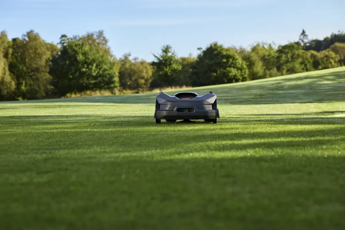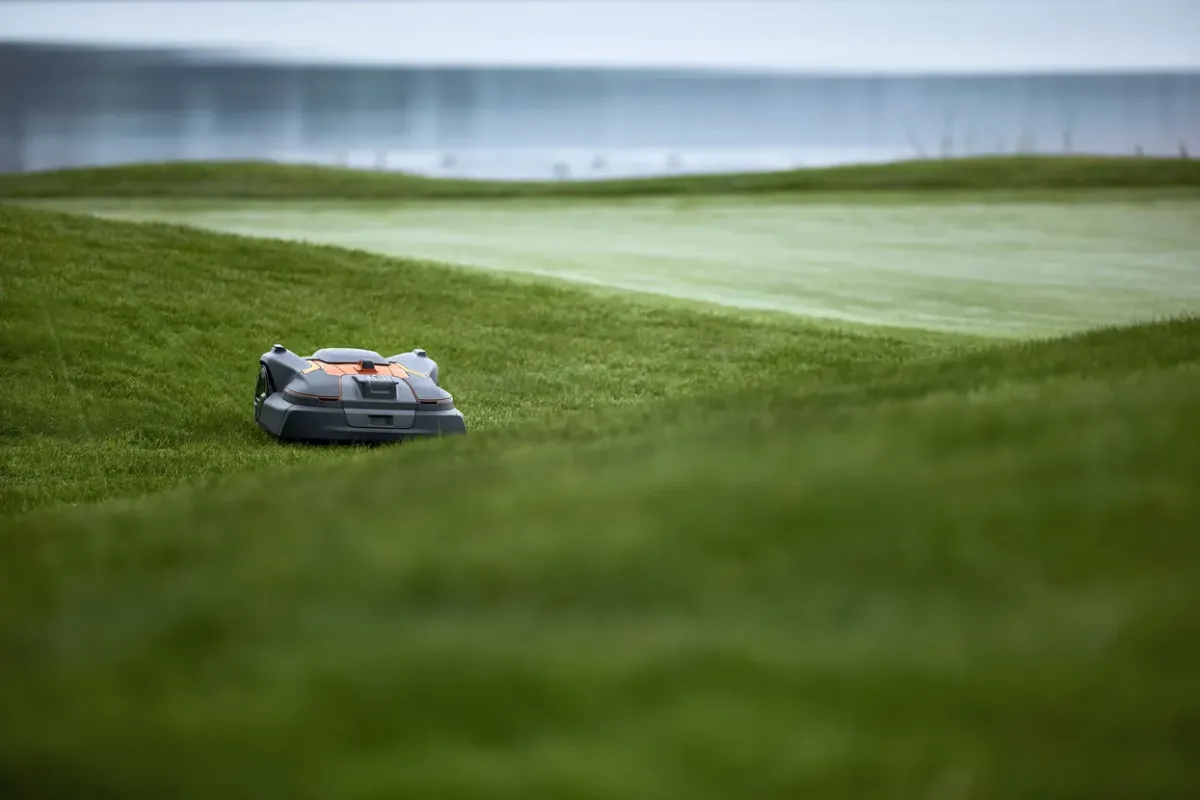 Vezeték nélküli robotfűnyíró a precíz, erőteljes nyíráshoz golfpályákon.
