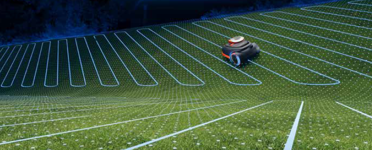 A 3D terep-alkalmazkodó technológiával a bonyolult gyepterületeket optimális munkazónákra bontja, így a robot hatékony vágási útvonalakat választ, különösen a lejtőkön.