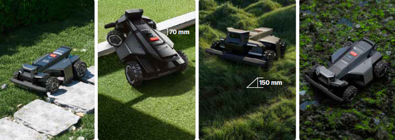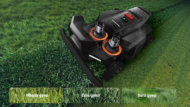 Páratlan teljesítmény. Új, ORV-hangolású dupla felfüggesztésünk akár 7 cm magas akadályokat is leküzd, és akár 84%-os emelkedőn is magabiztosan dolgozik.