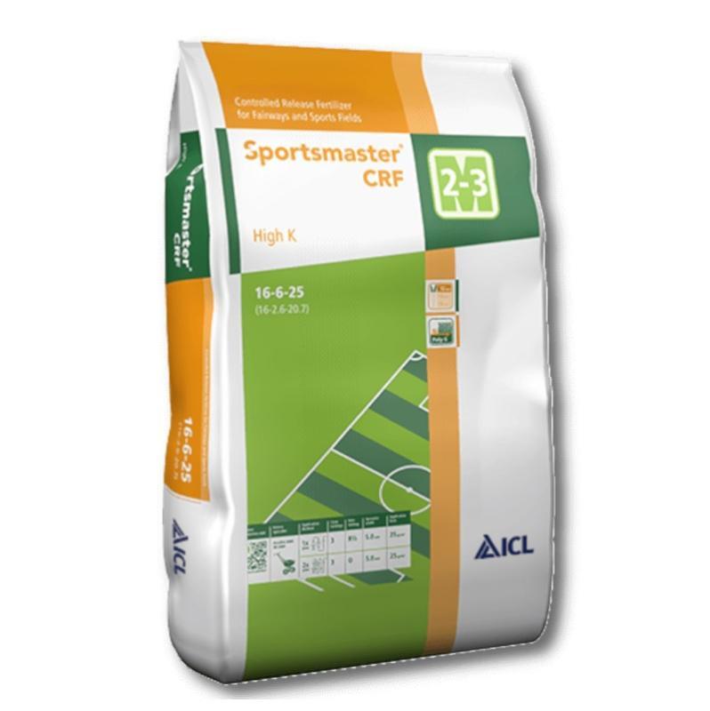 A Sportsmaster (High K) 2-3 hónapos hatástartamú összetett műtrágya, amely szabályozott tápanyag-leadású, burkolt és hagyományos, burkolat nélküli műtrágyaszemcsék keveréke. A burkolat nélküli szemcsék azonnal felvehető tápanyagforrást biztosítanak a fű számára A Sportsmaster (High K) az ICL szabadalmazott Poly-S és PACE burkolási technológiájával készült. A megemelt káliumtartalom szilárdítja a növény szöveteit és javítja azok vízháztartását.